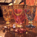 クリスタルな透き通る色合いが非常に美しいウォーターグラスです。赤、青、黄の3色が2つずつセットになっております。ディナータイムにそっと、豪華さを添えてみてはいかがでしょうか。